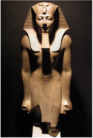Thutmose III – reigned for almost 54 years, until c. 1425 BC. For the first 22 years he was kept in the background by his step-mother Hatshepsut. As sole ruler, he embarked on a career of conquest, expanding the Egyptian Empire to its largest extant and ushering in a Golden Age. Having never lost a battle, he is nicknamed “The Napoleon of Egypt” and his military tactics are studied to this day. Late in his reign the memory of his predecessor Hatshepsut was expunged from historical records.